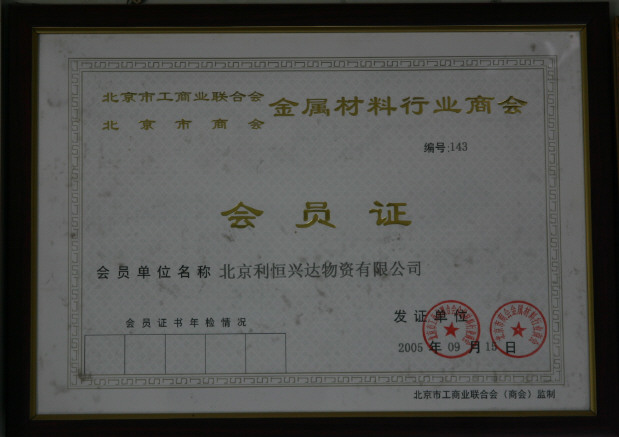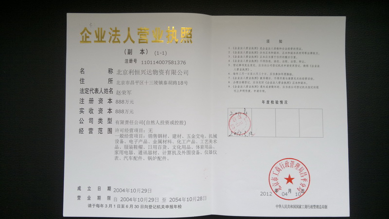 您现在的位置:北京利恒兴达物资有限公司 > 公司资质